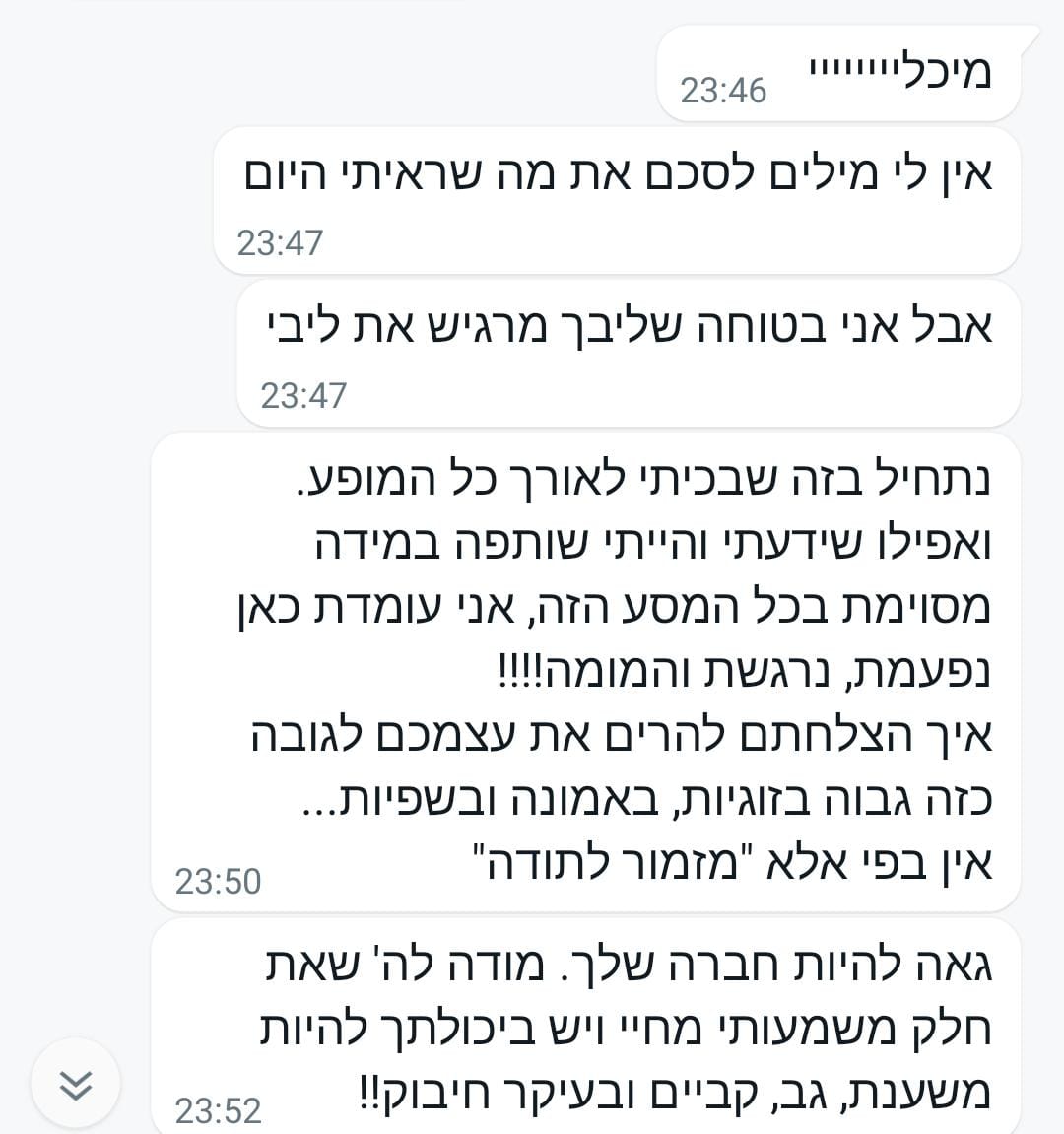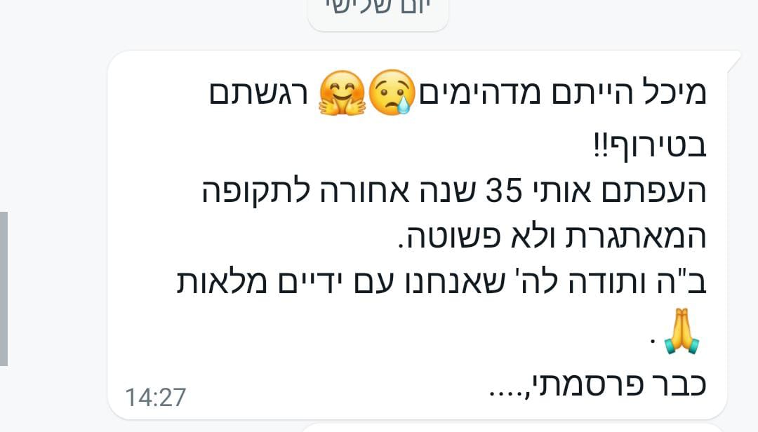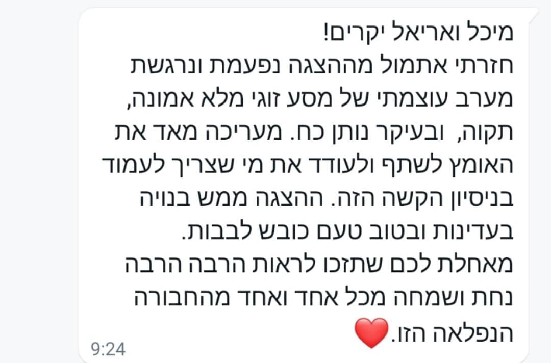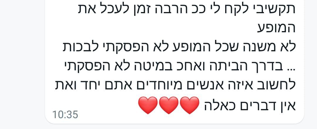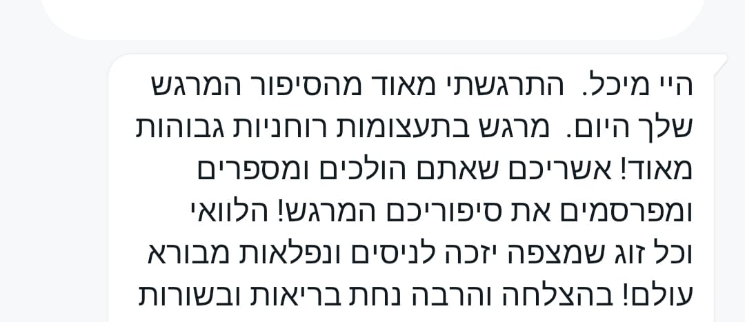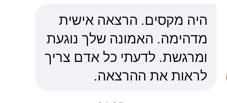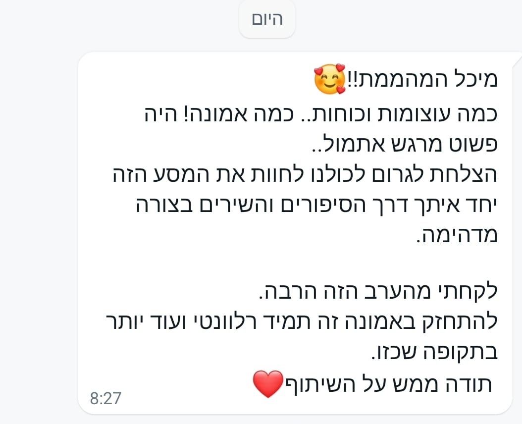 אז אם את רוצה להתרגש, לצחוק, להוריד דמעה ולצאת מחוזקת את מוזמנת ליצור איתנו קשר.